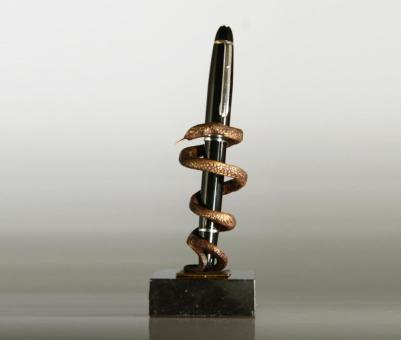 W sumie nie pamiętam jak natknąłem się na ten gadżet, ale dobrze pamiętam, że jak go zobaczyłem to musiałem go mieć 🙂 Tutaj wyjątkowo powiem Wam, gdzie można go znaleźć, bo nie jest to łatwe (a prezent jak i projekt są super!) – producentem jest firma Nest mająca siedzibę w Warszawie. Nie wiem czym mnie urzekła ta figurka, ale sam pomysł wkładania w nią pióra na wzór „Laski Eskulapa” uważam za genialny! 🙂 Pamiętam, że od razu po zdaniu egzaminu z chorób wewnętrznych poszedłem kupić go sobie w nagrodę (wersja miedziana) 😉 Polecam!